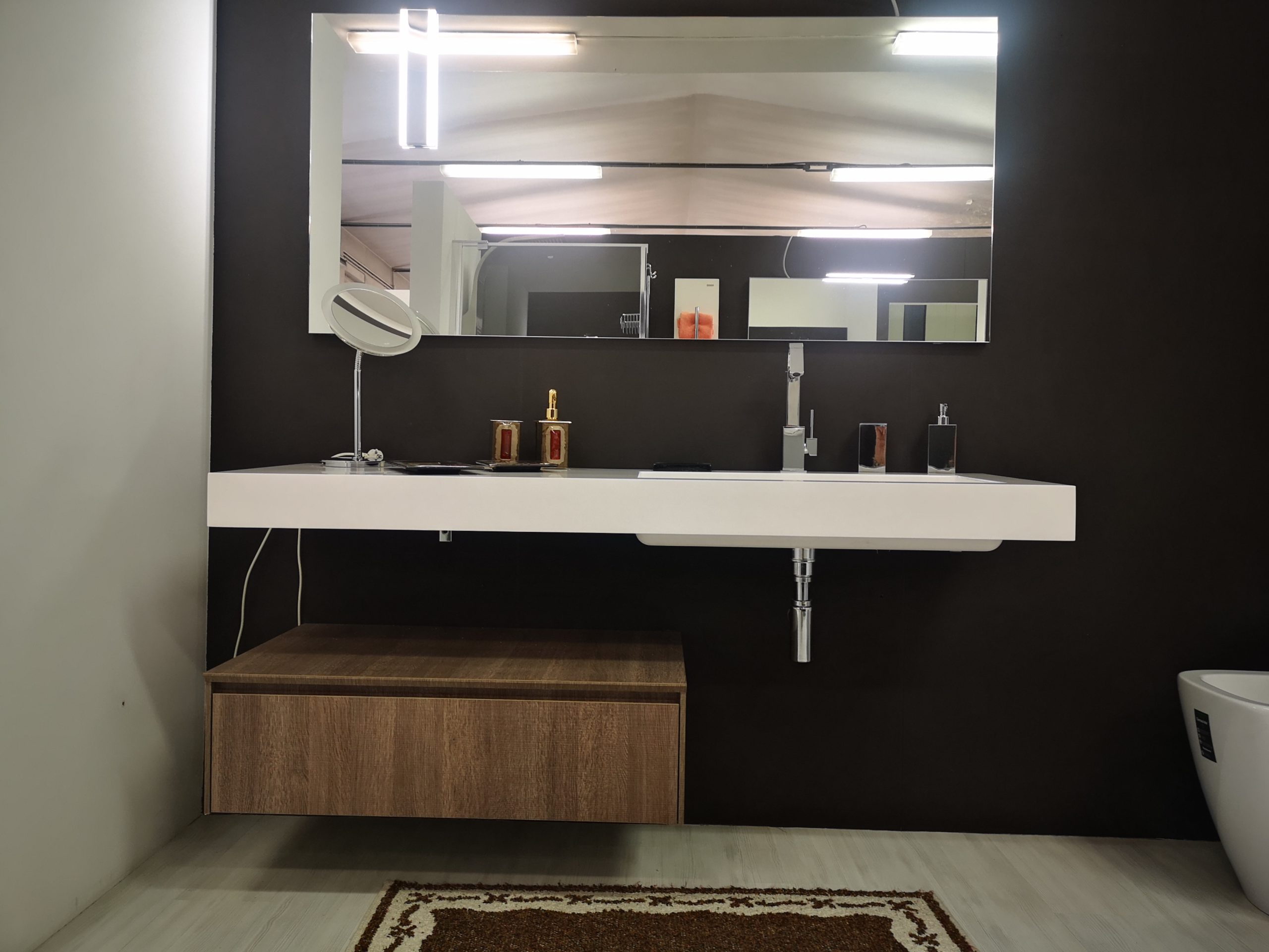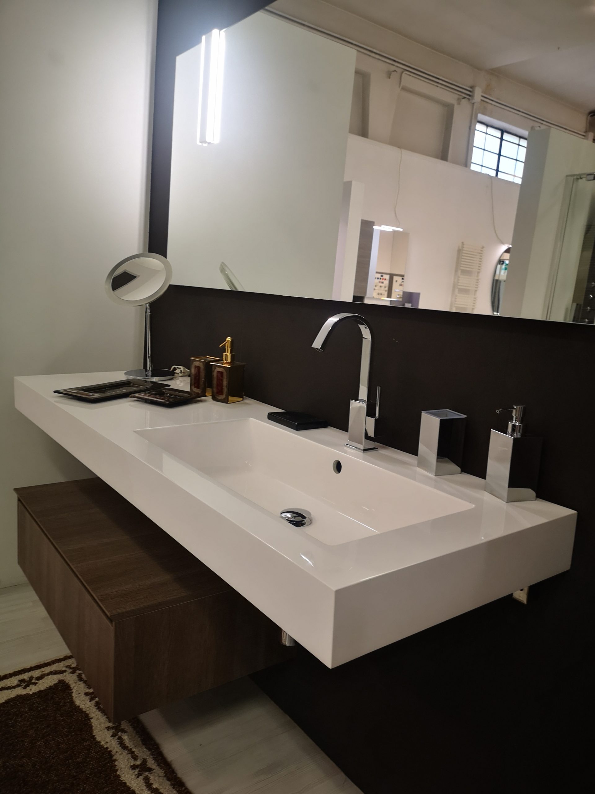 ALBATROS Top con lavabo integrato sospeso 160×51 White Brill bianco lucido(rubinetteria non compresa) .
