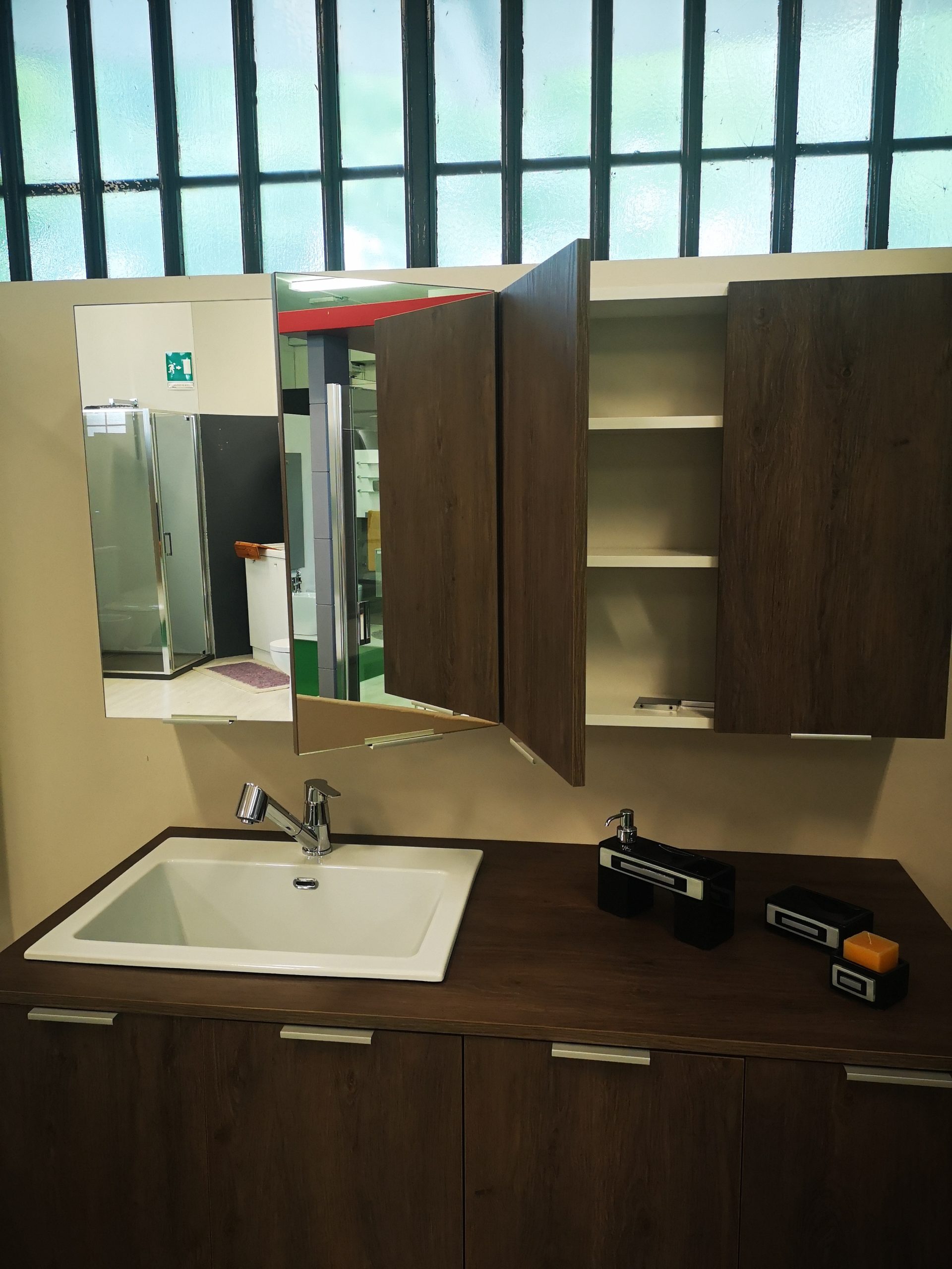 Pensili contenitori, 2 ante con specchio